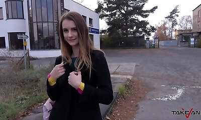 Slim blonde Euro teen bangs in fake taxi