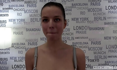 Czech brunette sweetheart Tereza strips and masturbates in casting video