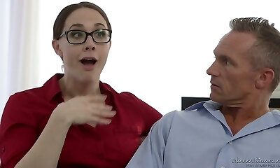 Alluring brunette in glasses Tali lets the interviewer love her puss