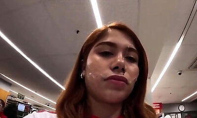 Casting teenage gets messy facial after doggy anal fuck in the back room