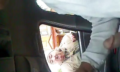 Flashing his cock to mature chick