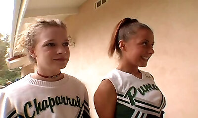 Cheerleader in panties slurping balls in ffm porn shoot