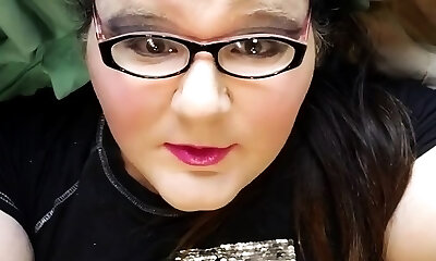 Super Hot tranny in pink hat gargles and fucks at dinning room table