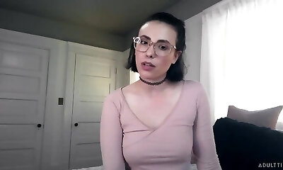 Sitting on the chair auburn female Sky kinda brags of her juicy juicy tits