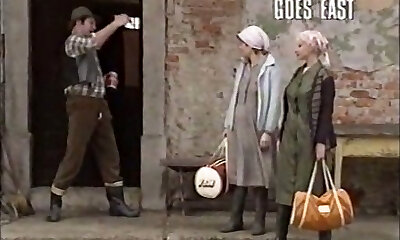 Sexy and cute village femmes in the barn having foursome