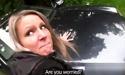 Blonde gets snatch cumshot outdoors