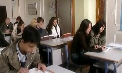 My Italian schoolteacher climbs under the table to make this day much more pleasurable.