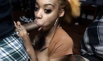 Black Beauty's Lips and Funbags Covered in Cum