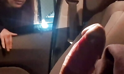 She cannot focus on the road because he drains for here