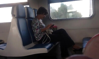Very young girl flashing in the train