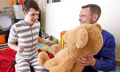 Twink Stepson And Stepdad Family Threesome With Stuffed Cub