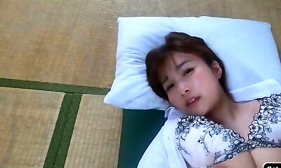 Gorgeous Haduki Naho and her cute homie jerk a phat dick with their tits