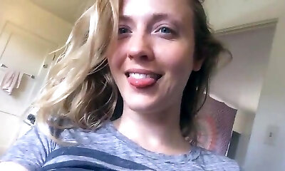 Hot blonde mommy exposes her big boobs and puffy nipples