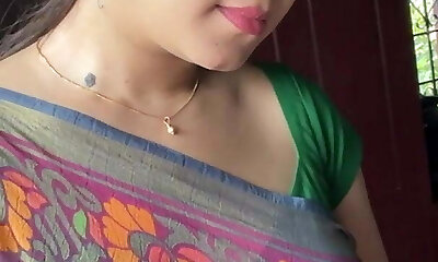 mind-blowing Indian Aunty Sexy Green Saree