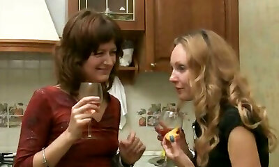 Mature Russian gals in the kitchen go further than a party