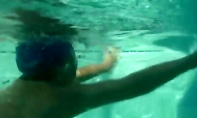 This Cute Girl Shows Her Big Tits Underwater In The Pool While The Web Cam Is Watching Her!