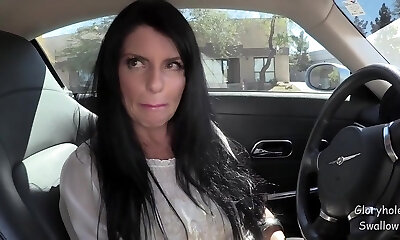 Kinky MILF slut swallow cock in moving truck